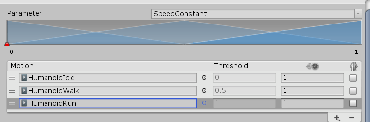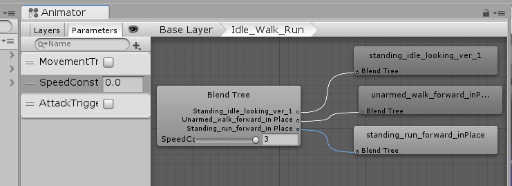 This is what your blendtree should look like in the Animator once you are done. SpeedConstant is the value we will be calculating.
