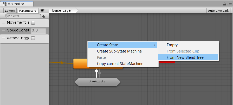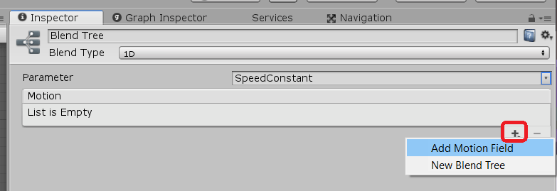 First, make a blendtree in your Animator. You should also add the SpeedConstant animation parameter if you don’t have a variable representing the speed this character is moving yet.