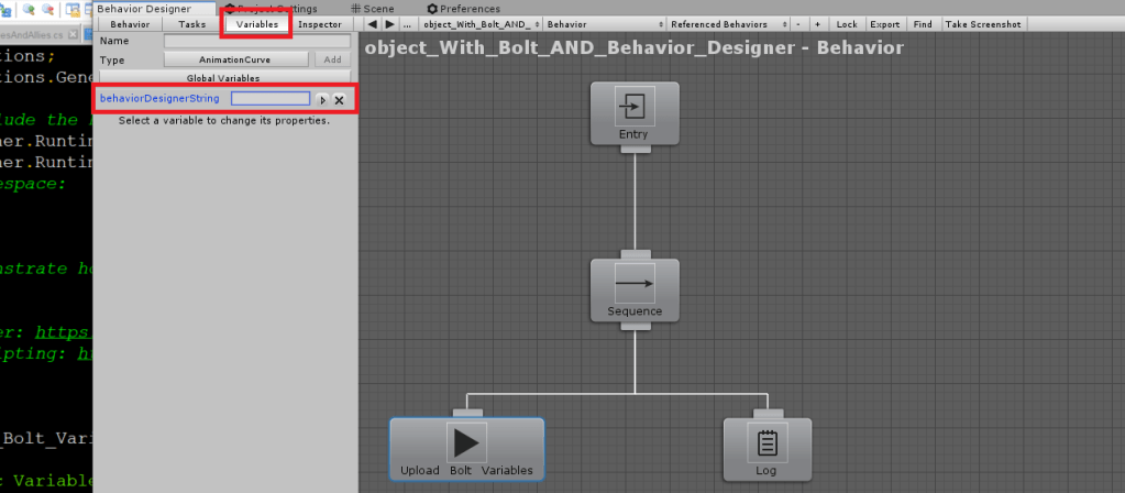 When I thought about it, I came to the conclusion that much of the time we’re going to have some kind of variables that we need to share between Behavior Designer and Bolt and so that’s what I focused on.
